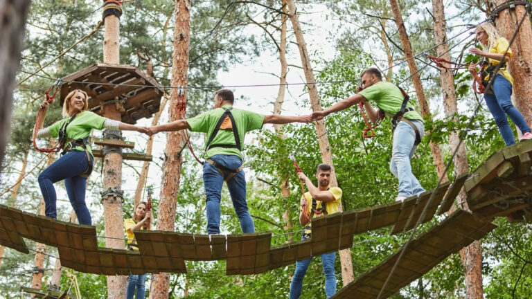Gather your colleagues and take it to the trees for an unforgettable team-building adventure that’s designed to build group skills.
